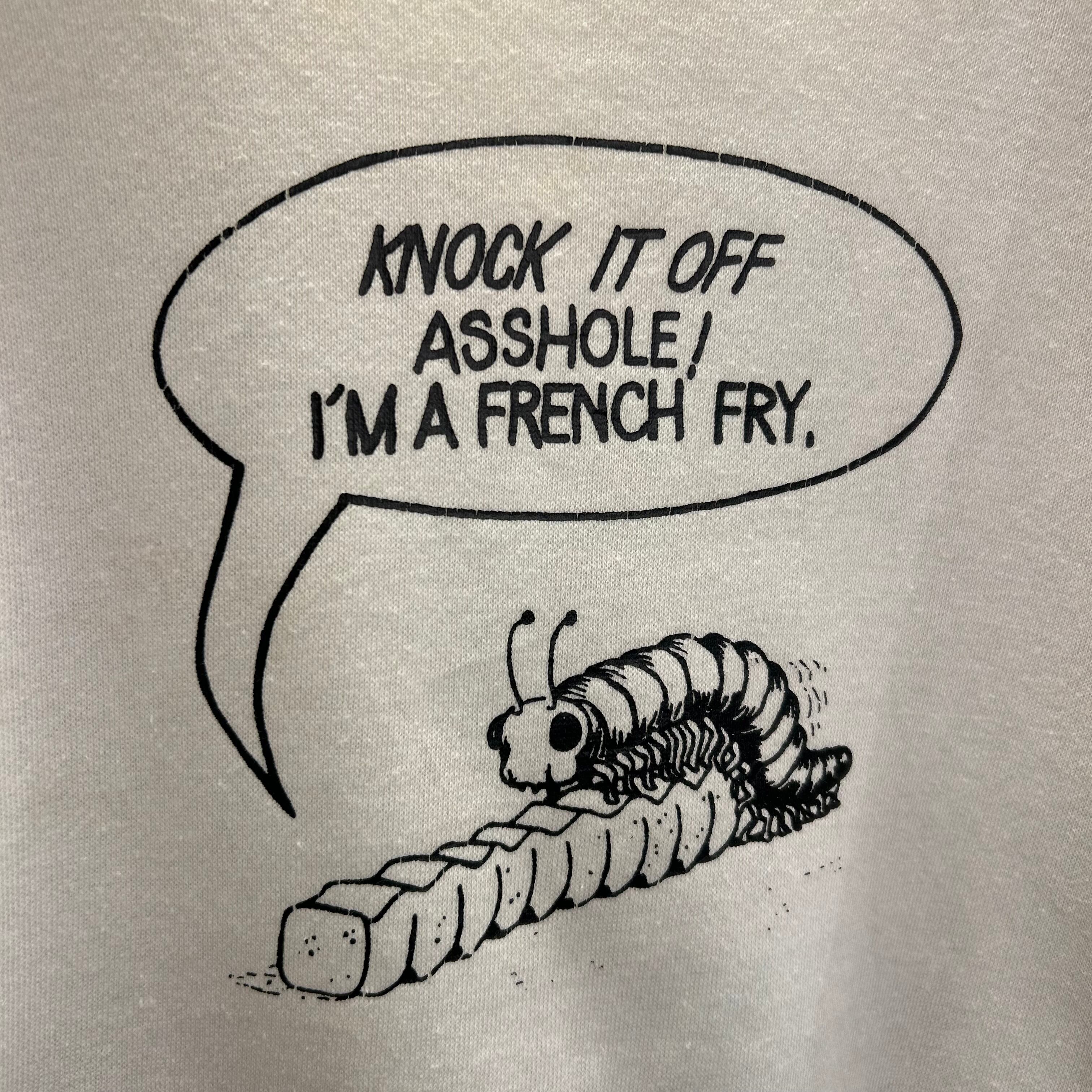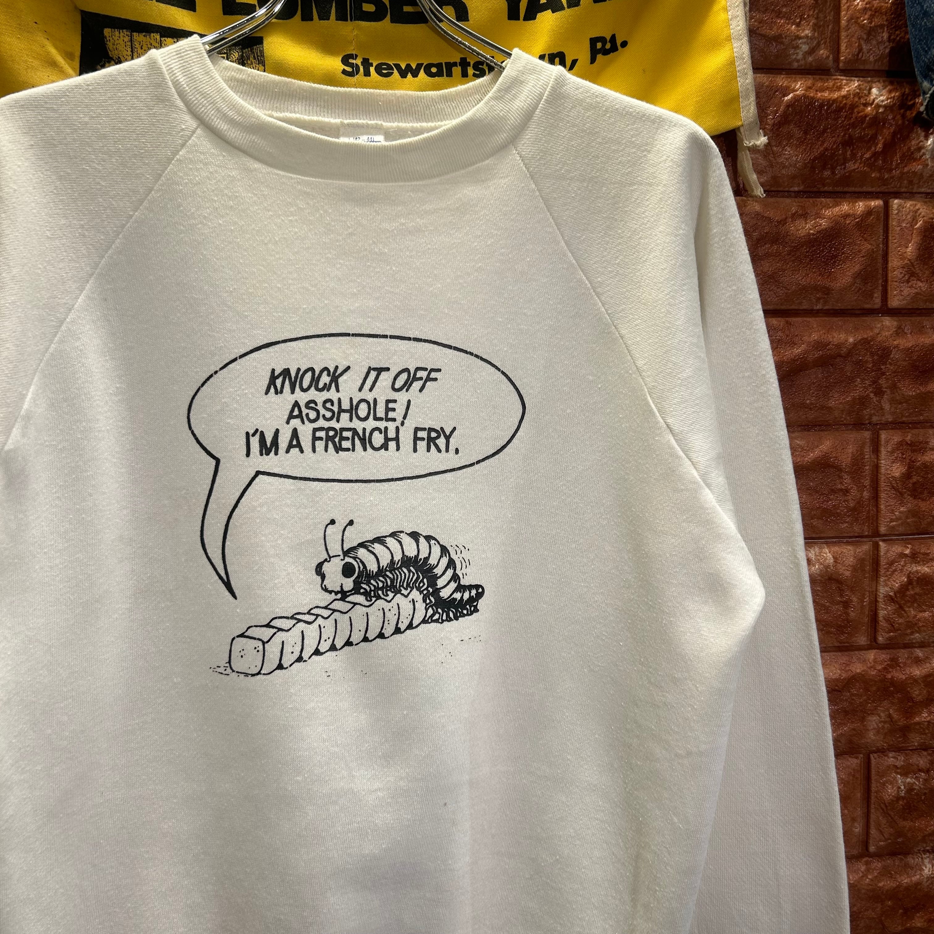 【80s】HEALTHKNIT USA製 KNOCK IT OFF ASSHOLE/I'M A FRENCH FRY,.raglan sweat